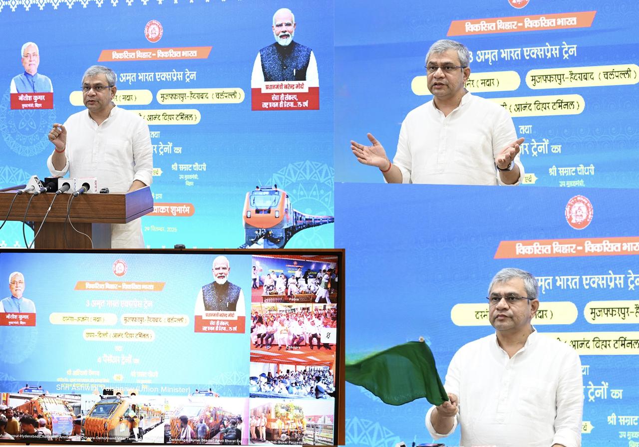 बिहार विधानसभा चुनाव-2025 के पहले केंद्र सरकार की ओर से बिहार को विभिन्न योजनाओं की सौगात दी जा रही है। इसी क्रम में बिहारवासियों को सोमवार को भी दीपावली और छठ महापर्व से पहले सात नई ट्रेनों की सौगात मिली है। रेल मंत्री अश्विनी वैष्णव ने वीडियो कॉन्फेंसिंग के माध्यम से ट्रेनों का शुभारंभ किया।