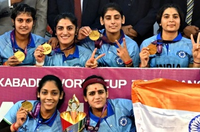 बांग्लादेश के ढाका में महिला कबड्डी विश्व कप 2025 जीतने के बाद स्वदेश लौटी
