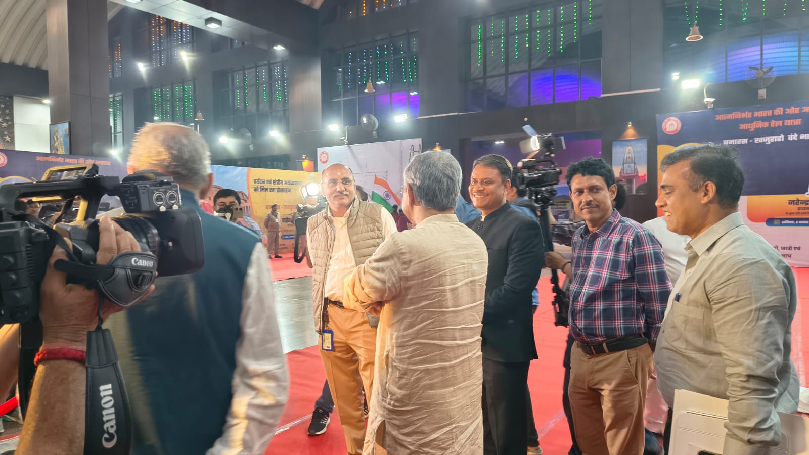 प्रधानमंत्री नरेन्द्र मोदी शनिवार को कुछ ही देर में अपने संसदीय क्षेत्र वाराणसी के बनारस (मंडुवाडीह) रेलवे स्टेशन के प्लेटफार्म नंबर आठ से चार वंदेभारत ट्रेनों को हरी झंडी दिखायेंगे। और बनारस से खजुराहो के लिए चलने वाली वंदेभारत को रवाना करेंगे। ये वाराणसी को मिलने वाली 8वीं वंदे भारत है। प्रधानमंत्री के स्टेशन पर आने के पहले ही भोर से ही ट्रेन में सवार होने वाले यात्री और स्कूली बच्चे पहुंचने लगे। स्टेशन के प्लेटफार्म पर खड़ी वंदे भारत में बैठने के पूर्व यात्रियों के सामानों की चेंकिग की गई। खास बात यह है कि बनारस रेलवे स्टेशन पर वंदे भा